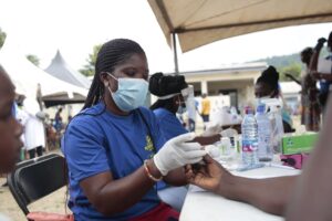 In 2021, our team traveled to Abono village in Ghana. Over 2,500 people came out to receive medical care and other kinds of support from our outreach. Mothers brought their children to receive free treatment, and elderly residents left with new glasses to improve their eyesight.
